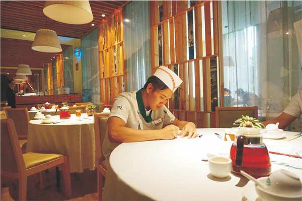 古雅鵬從鴻雁鵝莊的小小炒鍋師傅到星夜蜜大酒樓任部長(zhǎng),現(xiàn)在已經(jīng)是廣西桂小廚的廚師長(zhǎng),深刻感受到廚藝是廚師立足的關(guān)鍵,但要成為一名優(yōu)秀的廚師必須具備良好的廚德。培養(yǎng)好的廚德才能使廚師走向成功,這正是廣西華南烹飪技工學(xué)校的老師言傳身教的教誨。