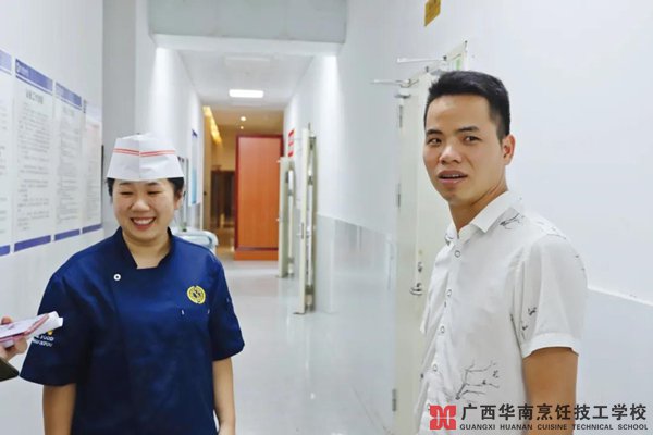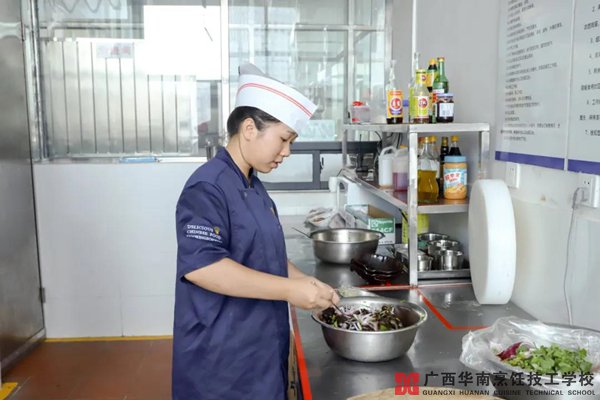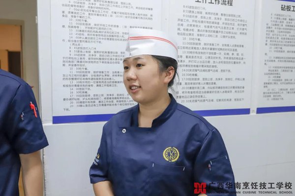馮蘇葵從小就喜歡烹飪,10歲就開始學會做菜,每天都堅持給家人做飯,一向?qū)ε腼兏信d趣的她在初中畢業(yè)后,得到了家人的支持,毫不猶豫地選擇報讀廣西華南烹飪技工學校,開啟她人生的新篇章,學廚之路。