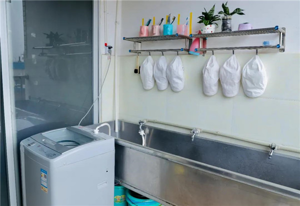 飯?zhí)檬称吩蠈9,飯菜品種多樣,質(zhì)量有保障。宿舍管理有序,設(shè)施齊全。配備洗衣機(jī)、空調(diào)、電風(fēng)扇、熱水器等,讓學(xué)生生活安全、舒適、便捷。