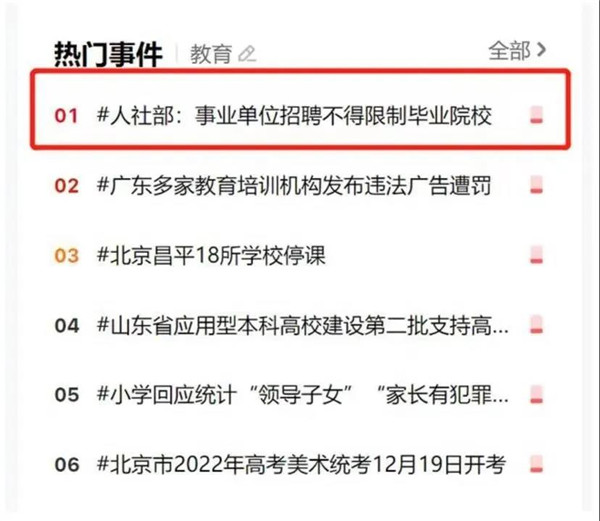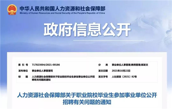 近日,人力資源社會保障部印發(fā)《關(guān)于職業(yè)院校畢業(yè)生參加事業(yè)單位公開招聘有關(guān)問題的通知》,要求事業(yè)單位公開招聘要樹立正確的選人用人理念,破除唯名校、唯學(xué)歷的用人導(dǎo)向,切實(shí)維護(hù)、保障職業(yè)院校(含技工院校)畢業(yè)生參加事業(yè)單位公開招聘的合法權(quán)益和平等競爭機(jī)會。
