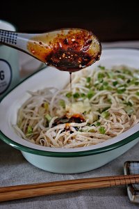 4.涼面里加醋更能凸顯麻辣的風(fēng)味。
