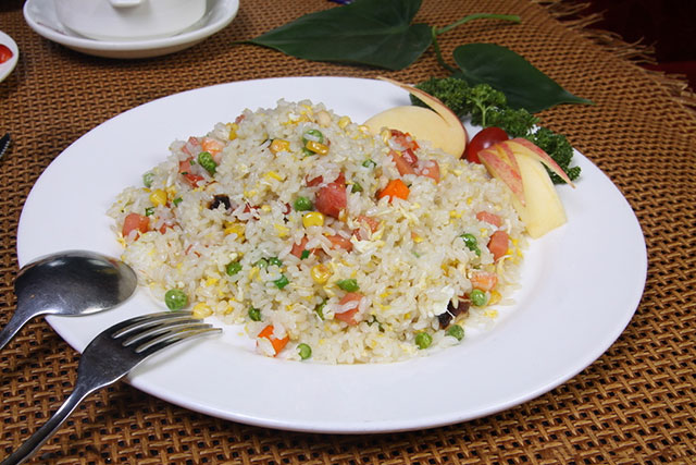 說到炒飯,不得不提的就是揚(yáng)州炒飯了,揚(yáng)州炒飯又名揚(yáng)州蛋炒飯,是江蘇揚(yáng)州經(jīng)典的漢族小吃。相傳源于隋朝,后經(jīng)歷代廚師逐步創(chuàng)新,結(jié)合淮揚(yáng)菜特點(diǎn),發(fā)展而成。廣義的揚(yáng)州炒飯,品種多,有“金裹銀”、“什錦蛋炒飯”及“青菜炒飯”等。其中,什錦蛋炒飯是最典型的品種。制作時(shí),先將雞蛋炒好,再將其他配料炒熟并調(diào)好味,盛起備用,然后炒米飯,最后將炒好的雞蛋和其它配料倒入一半炒勻,炒勻后盛出三分之二放在盤中,再將剩下的配料與鍋中的米飯炒勻,蓋在盤中的炒飯上。