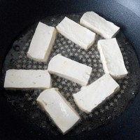 1、豆腐切塊入鍋煎