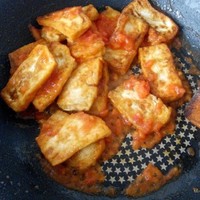 7、倒入準備好的汁進去,不一定非要到完,根據(jù)豆腐量決定,但最好多汁一點
