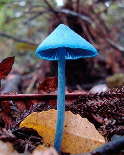它是誰?它是粉褶菌屬的霍氏粉褶菌。這種蘑菇的菌蓋最大約5cm,但菌柄很細(xì),只有約5mm直徑,名副其實(shí)又藍(lán)又瘦。