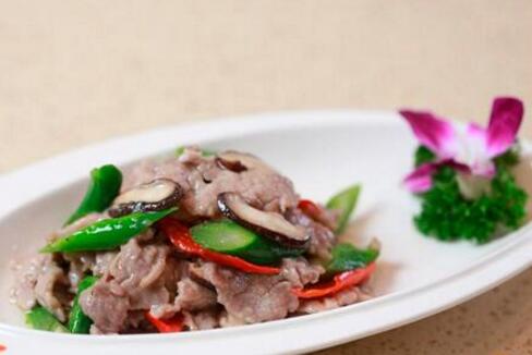 新鮮香菇洗凈去蒂后切片姜切片、肉切片。青紅椒切圈鍋?zhàn),下姜片爆香,青紅椒炒出香味,入香菇片翻炒至漸漸有水份析出,再加入肉片,淋醬油、生抽同炒炒至肉片熟透,快手加鹽、雞精、蔥花,翻勻即可出鍋