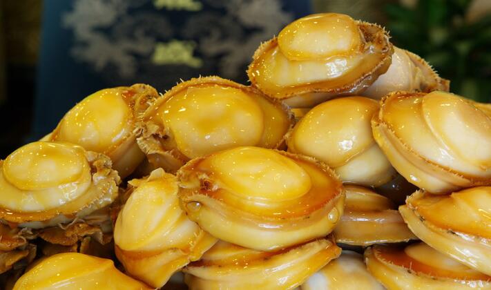 (1)將鮑魚以清酒及昆布蒸軟熟,切成1.5毫米厚的薄片。