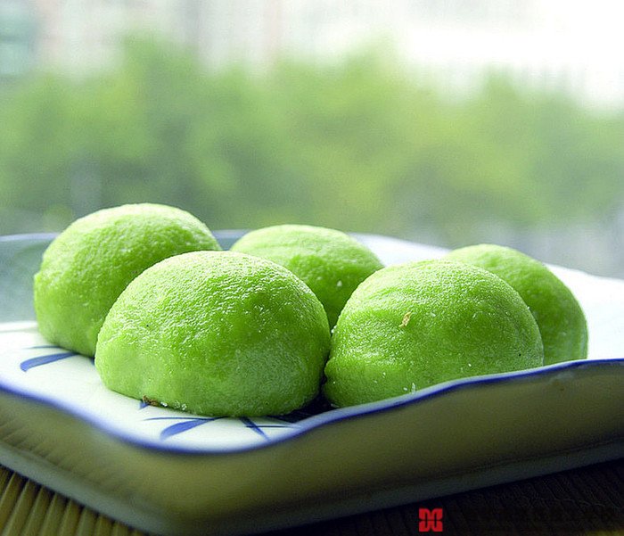 【清明團子】青團子是江南一帶清明節(jié)的小吃,獨到之處是用清明前后才有的野菜包括艾草、麥漿草、鼠曲草等給面團上色,包入豆沙餡蒸熟。做好的青團子顏色碧綠,聞起來吃起來都有一股淡淡的青草味,綿遠悠長,加上豆沙淡淡的甜,口感綿軟不粘牙,仿佛要把整個春天吃進嘴里。 青團子屬于點心,主要原料是糯米粉、大米;工藝是蒸。