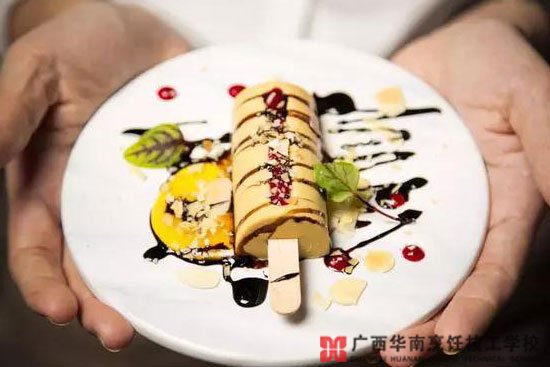 盤子居左,左叉右刀;液體在右邊,固體在左邊。廣西華南烹飪技工學校西餐專業(yè)的學生正優(yōu)雅嚴謹?shù)刂圃烀牢。食不厭精膾不厭細的追求,既造就了西餐的可愛與精致,也讓廣西華南烹飪技工學校這樣一群人顛覆了西餐的拘謹,打造出別樣的舌尖小清新。