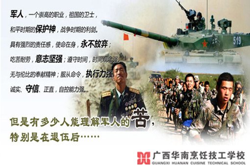 闊別國家軍隊(duì),我們希望越來越多的退伍軍人能加入廣西華南烹飪技工學(xué)校,爭做烹飪“特種兵”,退伍不褪色!