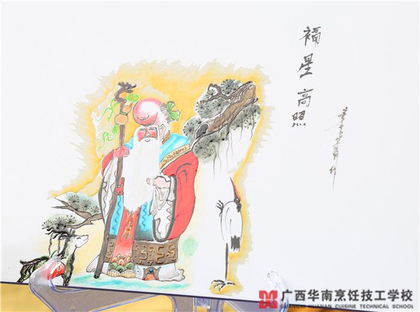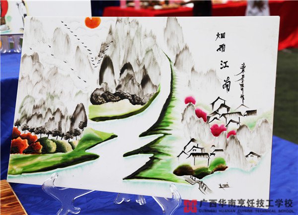 在廣西華南烹飪技工學校,同學們除了學習烹炒煎炸這樣的烹飪技能,果醬盤飾也是大家學習的內(nèi)容之一。同學們制作的果醬盤飾,有意的花鳥魚蝦,或者是優(yōu)美飄逸的文人書法、古詩,無論哪一個都顯得栩栩如生,亮點甚是吸睛。