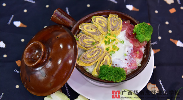 然后就是如何將這些材料,做出一碗美味的砂鍋飯。老師細(xì)心的演示講解,自己再?gòu)念^做一遍;鸷虻恼莆,米飯的調(diào)味,食材的搭配處理,裝飾等等,每一個(gè)小細(xì)節(jié)都面面俱到。
