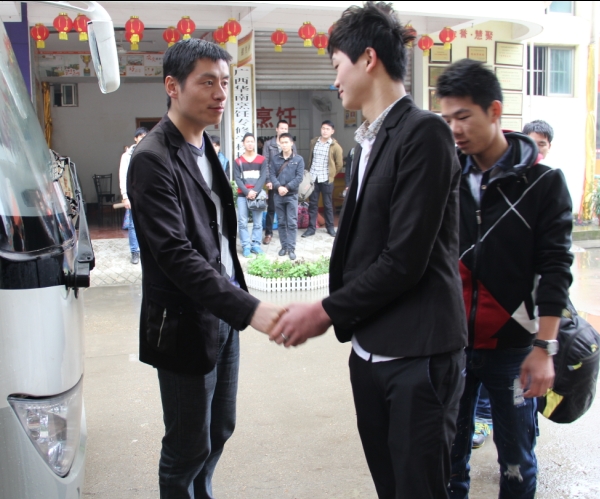 臨行前一一和老師握手