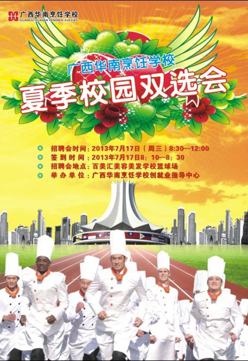 感謝貴企業(yè)多年來對我院畢業(yè)生就業(yè)工作的大力支持和幫助。為了滿足用人企業(yè)對優(yōu)秀人才的需求,也為了更好地幫助我校畢業(yè)生順利就業(yè),我校擬定于2013年7月17日(星期三)舉辦“廣西華南烹飪學(xué)校夏季校園雙選會(huì)”,屆