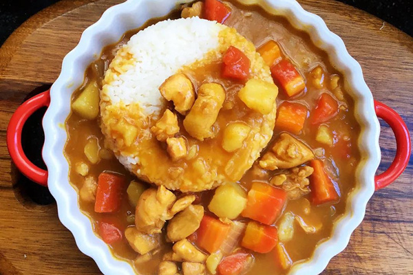 15. 澆上燉好咖喱雞肉土豆,美美的一餐享用吧。