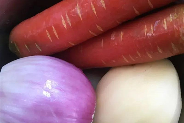 1、洋蔥,紅蘿卜和土豆洗凈備用。