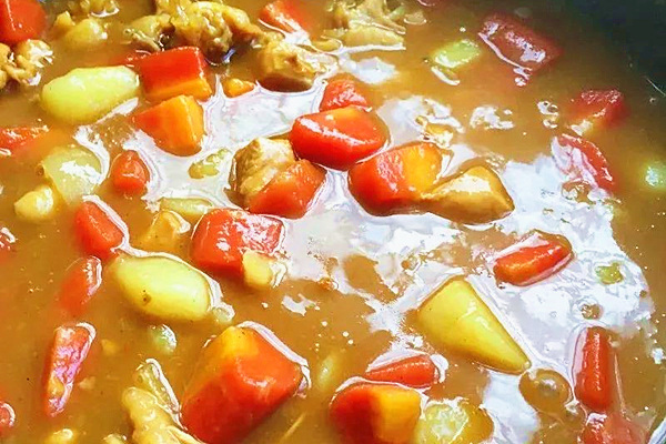 11. 雞塊熟了放入土豆和紅蘿卜同燉。