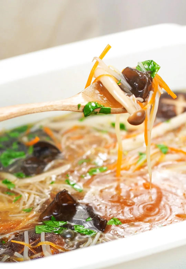 這滿當當?shù)囊煌胴M是一個“鮮”字了得!各種菌菇本就是素食界的天然提鮮劑,這一碗濃縮的精華跟葷版的佛跳墻比鮮也完全不在話下!