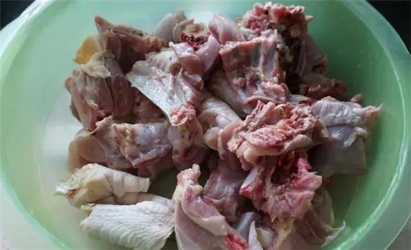 2、將雞肉剁成大小適宜的肉塊,多次清洗干凈備用。