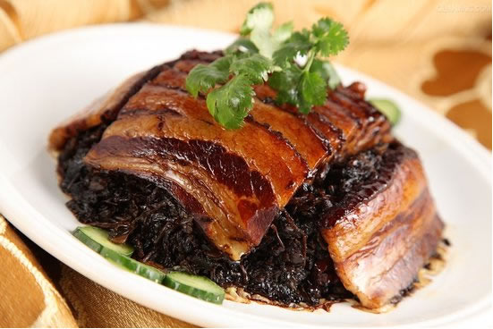 梅菜扣肉即我們常稱之燒白,因地域不同而名字頗多,其特點在于顏色醬紅油亮,湯汁黏稠鮮美,扣肉滑溜醇香,肥而不膩,食之軟爛醇香。當(dāng)你咀嚼一塊,滿嘴流油的時候,你會感覺它一點不肥膩。梅菜吸油,五花肉又會帶著梅菜的清香,松仁的醇香,梅菜、松仁和肥五花肉的搭配真的可以說是恰到好處。