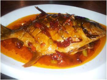 6、將鍋中的湯汁勾芡后,淋入魚盤中即成。