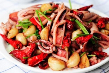 魷魚、大蒜、干紅辣椒、孜然粒、料酒、鹽、味精、小蔥、香菜各適量。