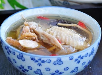 雞一只,黨參、黃芪各30克,紅棗25克,桂圓肉15克(或10顆去皮干桂圓),姜片少許,鹽少許,清水1.5升。