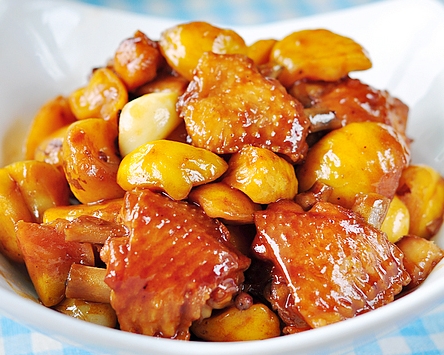 雞翅、板栗、花椒、八角、姜、蒜、鹽、老抽、生抽、番茄醬、冰糖、雞精