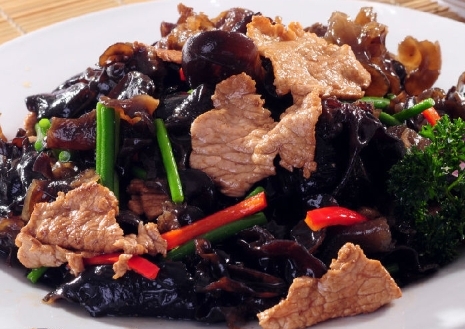 黑木耳、豬肉、青辣椒、紅辣椒、辣椒、油、鹽、醬油、生姜、蔥