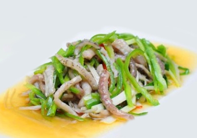 7. 鍋中放油少許,燒熱,把姜絲、魚絲下鍋稍炒,烹入調(diào)好的汁炒熟即可。