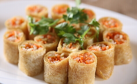 腐皮要新鮮腐皮,餡料飛水后要瀝干水分。