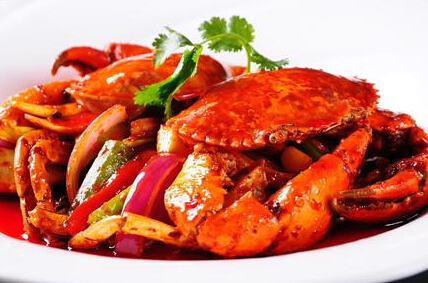 螃蟹,洋蔥、青紅尖椒、干辣椒、花椒、姜、蔥、蒜、豆瓣醬、黃瓜、鹽、白酒、料酒、雞精、淀粉、花生油各適量。