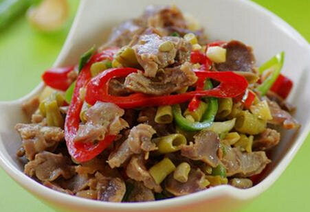 雞胗250g、酸豆角2根、紅椒1個、尖椒1個、青蒜1根、蔥1根、小米椒2個、蒜4瓣、姜1小塊、料酒1大勺、鹽1/2茶匙、雞精少許