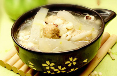 豬小排500克、冬瓜400克、薏米20克、芡實(shí)米20克、食鹽5克、姜1塊、料酒2湯勺、水適量