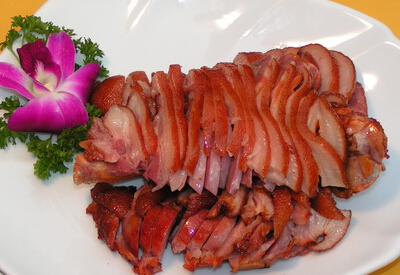 4、關(guān)火后,用原汁浸泡30分鐘入味。然后撈出豬耳,切成塊條狀裝盤即成。