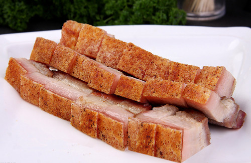 7、繼續(xù)放入烤箱,用200C度的火力烘烤20-30分鐘,或者是看到肉皮表面往外滋油即可。放涼后切件,沾上蘸料食用。