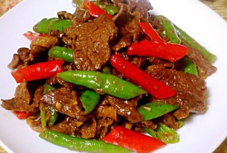 3、炒鍋溫油,倒入牛肉煸炒,用少許醬油調(diào)色。