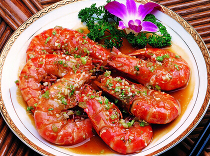 7、最后放入大蝦,大火稍微收汁,撒蔥花裝盤。