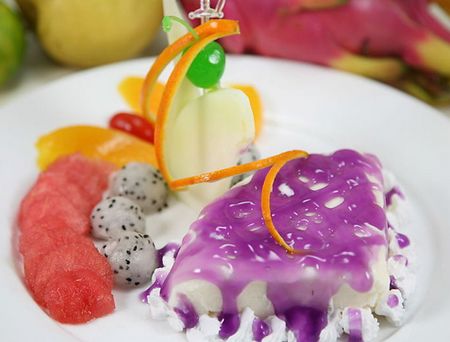 3、加入百香果肉汁、火龍果丁用小火續(xù)煮;