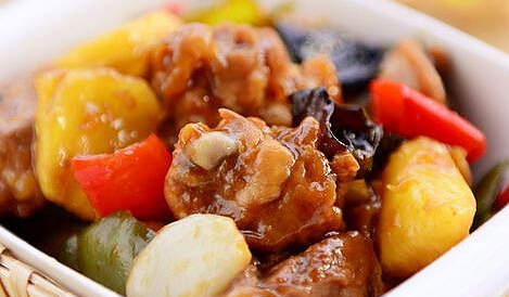 主料:雞1只、黑木耳8朵、菠蘿1/2個、紅椒1/2個、尖椒1/2個。