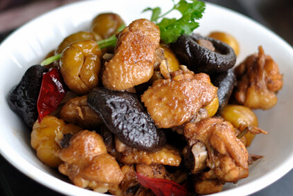 調(diào)料:栗子 (適量) 、香菇 (適量) 、精鹽 (適量) 、老抽 (適量) 、姜 (適量) 、料酒 (適量)