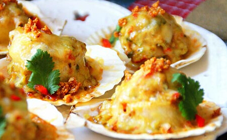 【主料】扇貝(6只)、山藥(一段)、紅椒(適量)、蒜(大半頭)、奶酪(適量)