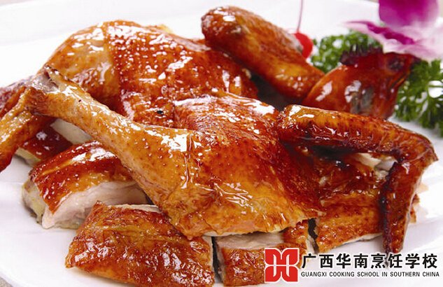 原料:雞1只,麥芽糖4克,生粉50克,白醋100克,白鹵水2500克,花生油200克。