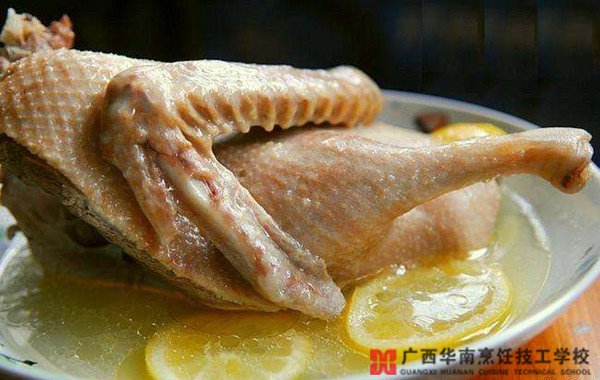 2.把鴨裝入砂鍋,加入食鹽、清水,放入蒸鍋隔水蒸40分鐘后加入檸檬(要去掉內(nèi)核),再蒸10分鐘,此時(shí)鴨肉已爛,且入檸檬味,淋入香油即成。