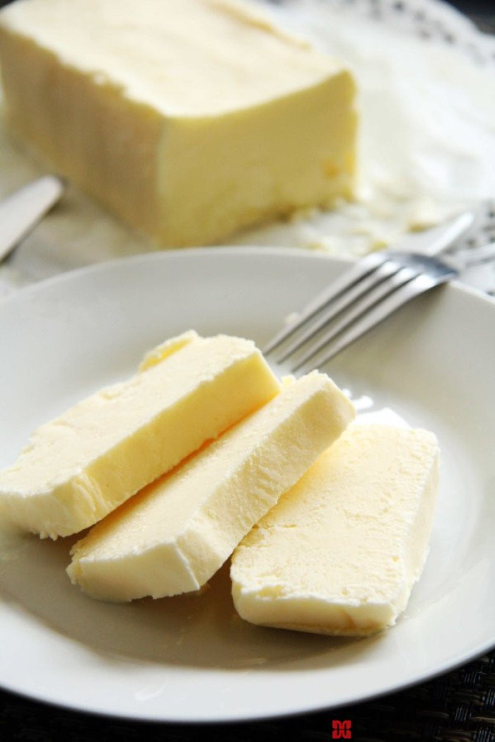 4、倒入鋪好油紙的方形容器中,放冰箱冷凍至硬即可。