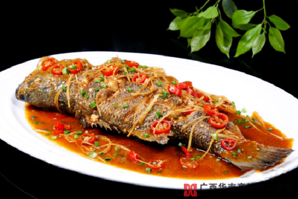 6、開(kāi)蓋加入適量的水、豆腐乳、姜絲、小紅椒、老抽,蓋上鍋蓋燜3分鐘,3分鐘后轉(zhuǎn)成中小火,火大了會(huì)干湯。用滾湯澆燙魚(yú)的上面一樣可以將魚(yú)弄熟(魚(yú)煮后會(huì)軟,菜鳥(niǎo)就別去翻了,免得弄爛了)。再加入適量的胡椒粉和雞精,繼續(xù)用滾湯澆燙,每個(gè)部位都要澆到。這樣一道美味的湘乳燒鱸魚(yú)就完成了。