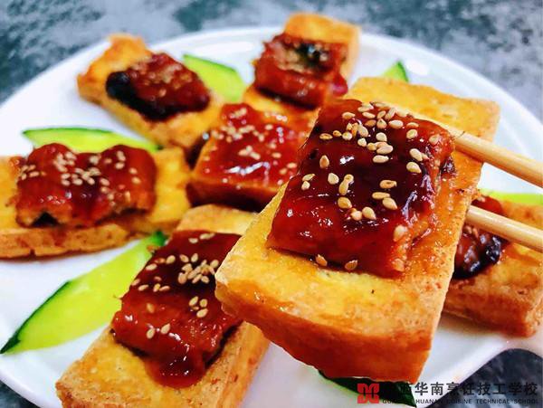做好的香煎鰻魚(yú)豆腐是不是很誘人呢?色澤金黃的豆腐,搭配醬紅色的鰻魚(yú),再加上白芝麻的點(diǎn)綴,光是看看就讓人想流口水!你喜歡烹飪和美食嗎?喜歡的話一定要來(lái)廣西華南烹飪技工學(xué)校學(xué)習(xí)喲!