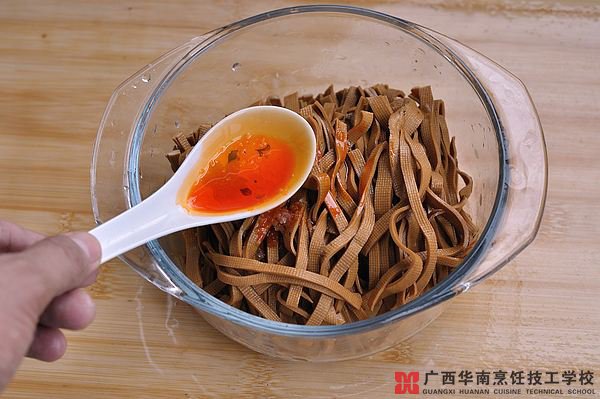 紅油豆腐絲,做法簡單、方便、快捷,用紅油來拌,香辣爽口,開胃下飯,快去跟著廣西華南烹飪技工學校老師一起動手試試吧!