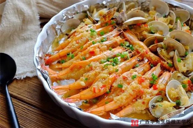 蒜蓉金針菇烤花蛤蝦的做法,你學會了嗎?如果你喜歡美食,想學烹飪的話,廣西華南烹飪技工學校歡迎您隨時前來咨詢喲~~