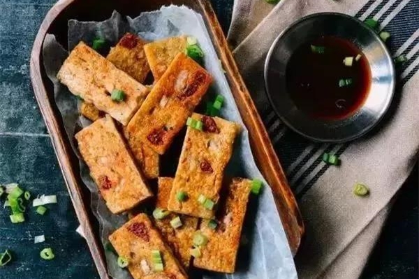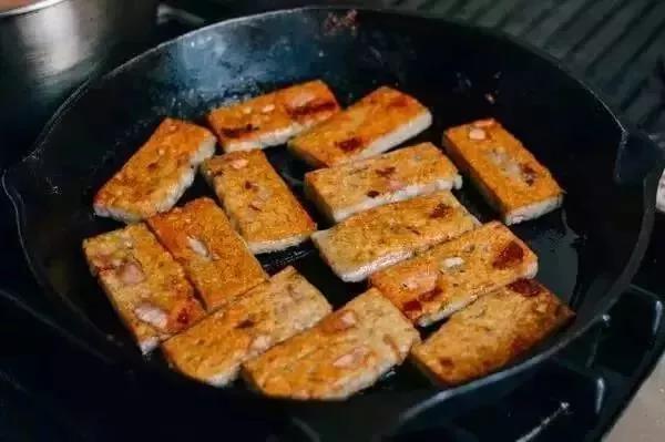 6.蒸熟后用小刀均勻分成一塊塊,下油鍋煎至兩面金黃,就可以開吃了!